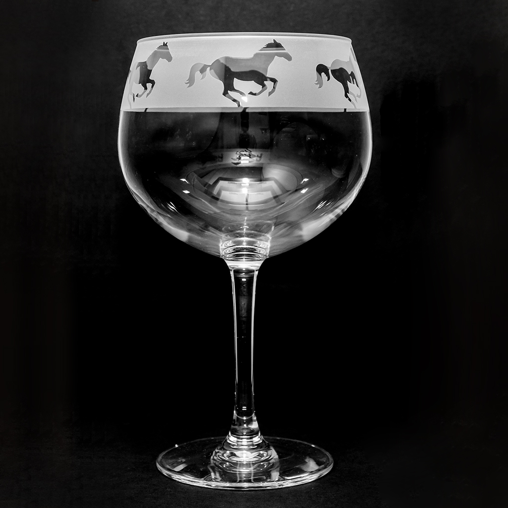 This attractive gin balloon glass is beautifully decorated using traditional sandblasting techniques.