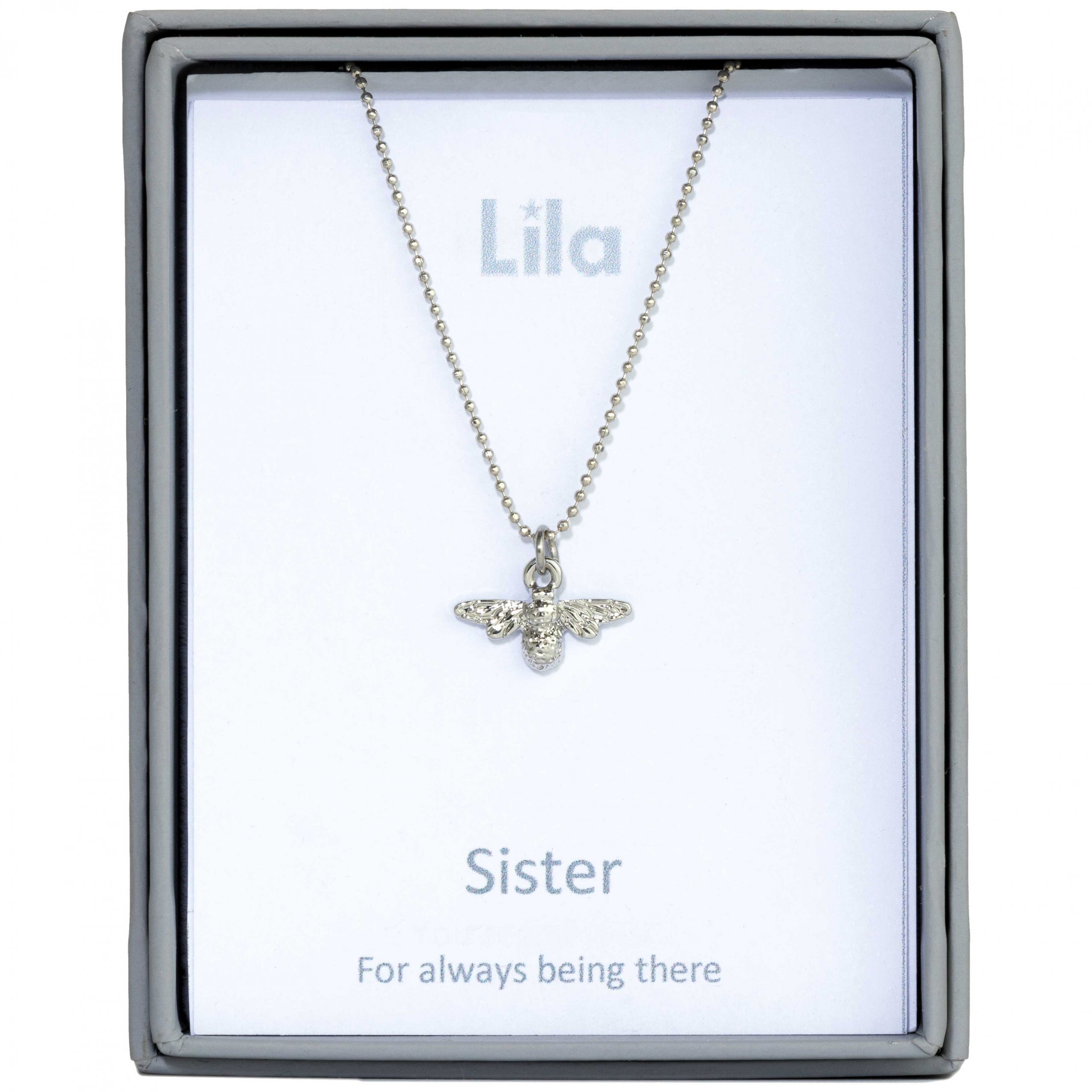 Buy this delightful, bee pendant (Sister) in a rhodium finish on a rhodium plated chain. This pendant is cute and unique and adds a touch of fun to any outfit at any time of the year. This pendant forms part of our sentiments collection. Each pendant in the collection comes with a message. Wrong message? No problem: It takes seconds to swap the message. Give that special person in your life a birthday gift with accompanying message or just a treat for them at any time of the year to show you care.